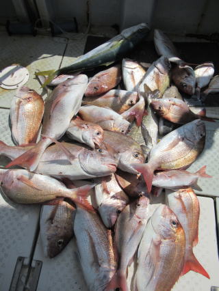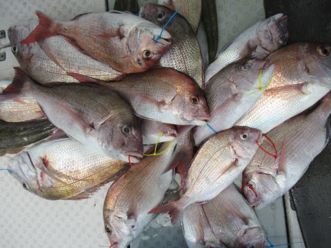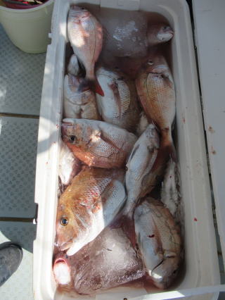 数か所目で釣っても釣ってもチヌ、チヌ、チヌ(オールリリース)、塩焼きサイズの鯛、時々良型の鯛。