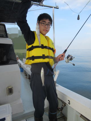 今日はレンタルロッドで初心者のお客様もご乗船です。